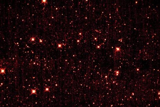这就是天文学家们在搜寻小行星时找寻的目标。这些拍摄于2014年1月1日的图片显示了一颗非常小的小行星(被微弱的红光和紫光环绕着)从背景恒星前经过。当时这颗直径2到4米的小行星正在落向地球。一天后,它冲破了大西洋上空的大气层,然后很可能在入海前就解体了。